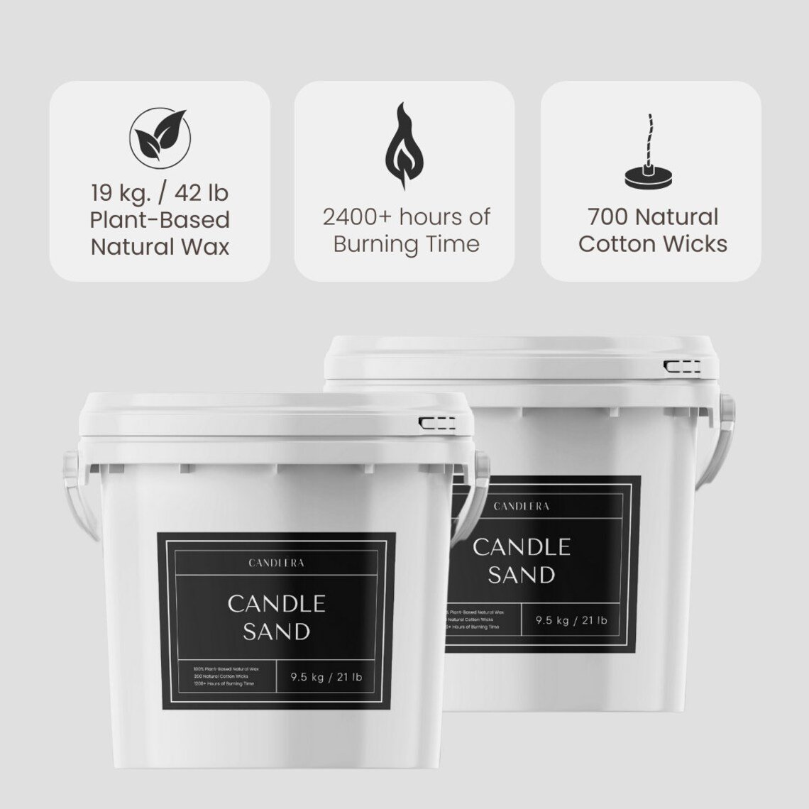 Upgrade your events with Candlera’s 19kg/42 lbs Bulk 2X Candle Sand Buckets, including 350 wicks each, ideal for wedding decor. This scent-free, pearled white wax offers a granulated texture for sophisticated candle making. Perfect for event planners, this bulk supply supports extensive decorating or personalized candle creations. Ensure a romantic ambiance and luxurious touch at any occasion with this versatile, elegant candle sand, enabling endless creativity and unforgettable decorations.